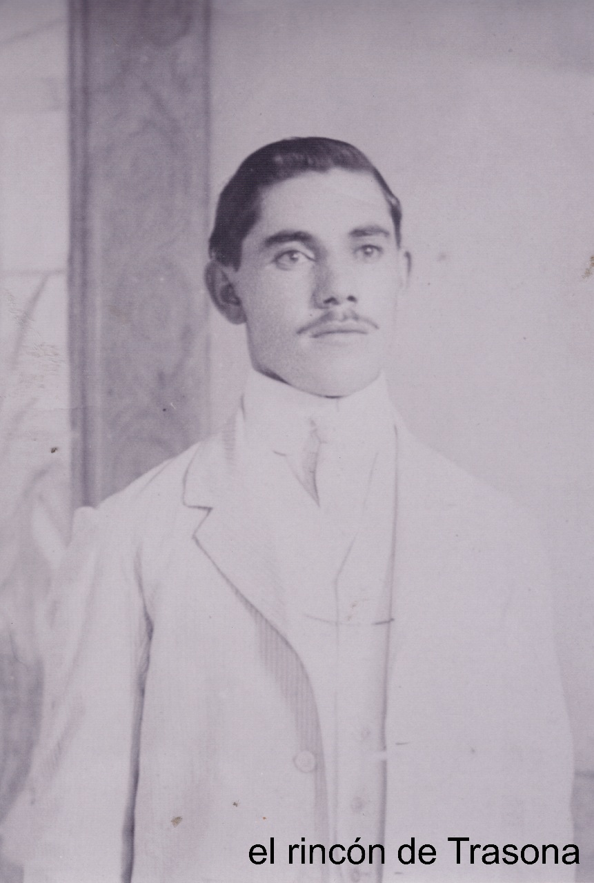 Nació en 1858. Emigró a Cuba a edad muy temprana ,donde tenía otros dos hermanos que nunca volvieron. A su regrero se casó con su cuñada que había quedado viuda con dos hijos (vivían en Tarín, propiedad de los marqueses de Ferrera). Tuvo siete hijos; la que se casó para "en casa" fué su hija Carmen, casada con Alfredo (de Perlora). Sobre 1.925, aproximadamente compró la finca de Villanueva en la que vivió con su hija y nietos hasta 1.940, más o menos.