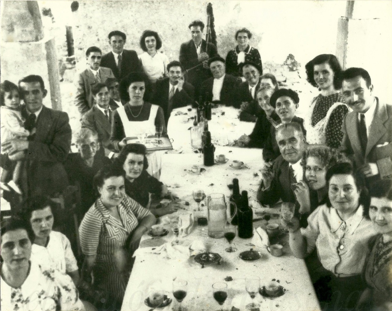 Lucia, con su hijo Oscar, detras su hermano Pepe, y su marido Angel, Gela al otro extremo y el niño en brazos de su madrina es Fructuoso el día de su bautizo.